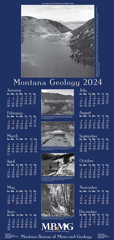 | Citation | Stickney, Michael, 2023, 2024 Calendar: The Hebgen Lake Earthquake and Madison Slide: Montana Bureau of Mines and Geology Miscellaneous Publications and Maps 75. |