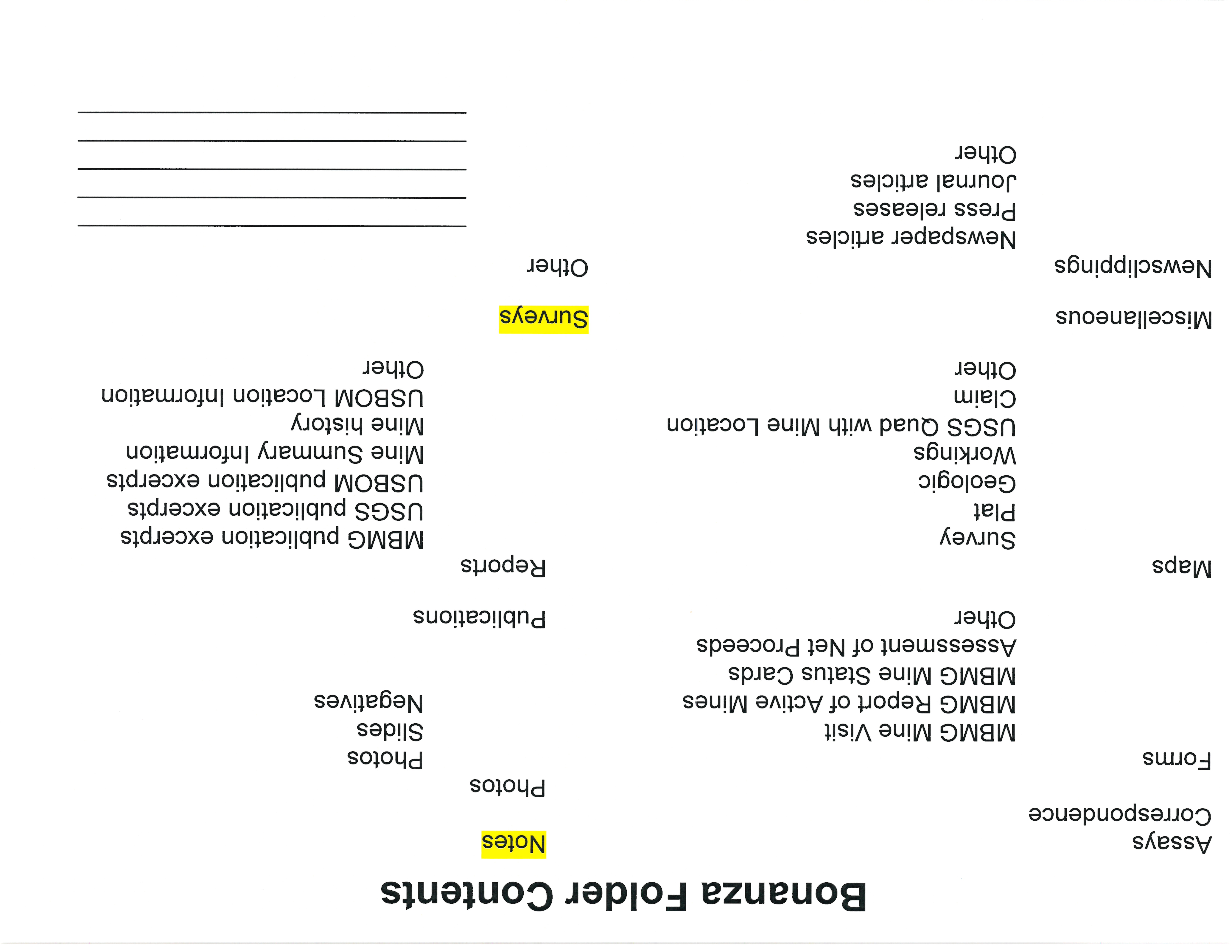 - "Bonanza Folder Contents", Beaverhead Mine Documents, Montana Bureau of Mines and Geology