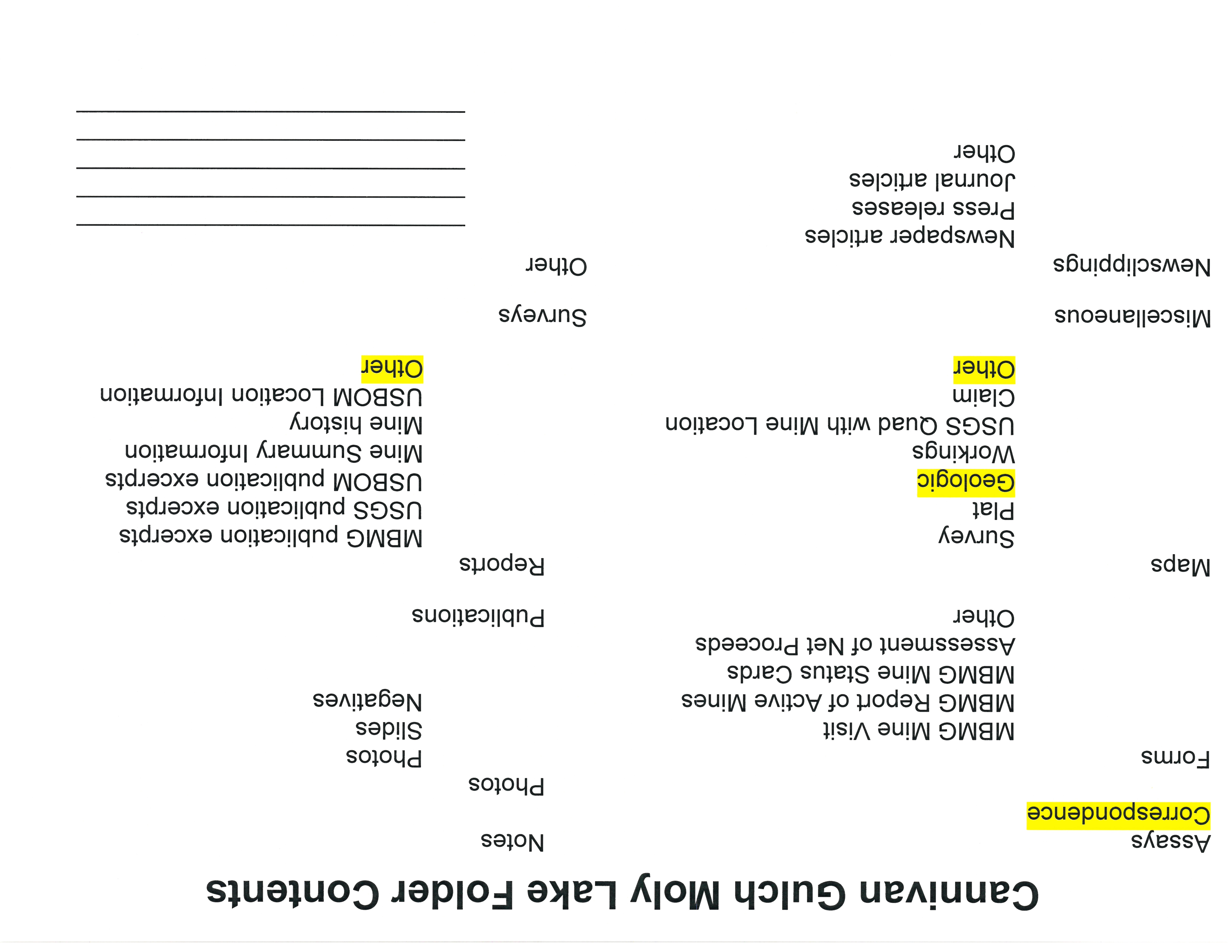 - "Cannivan Gulch Moly Folder Contents", Beaverhead Mine Documents, Montana Bureau of Mines and Geology