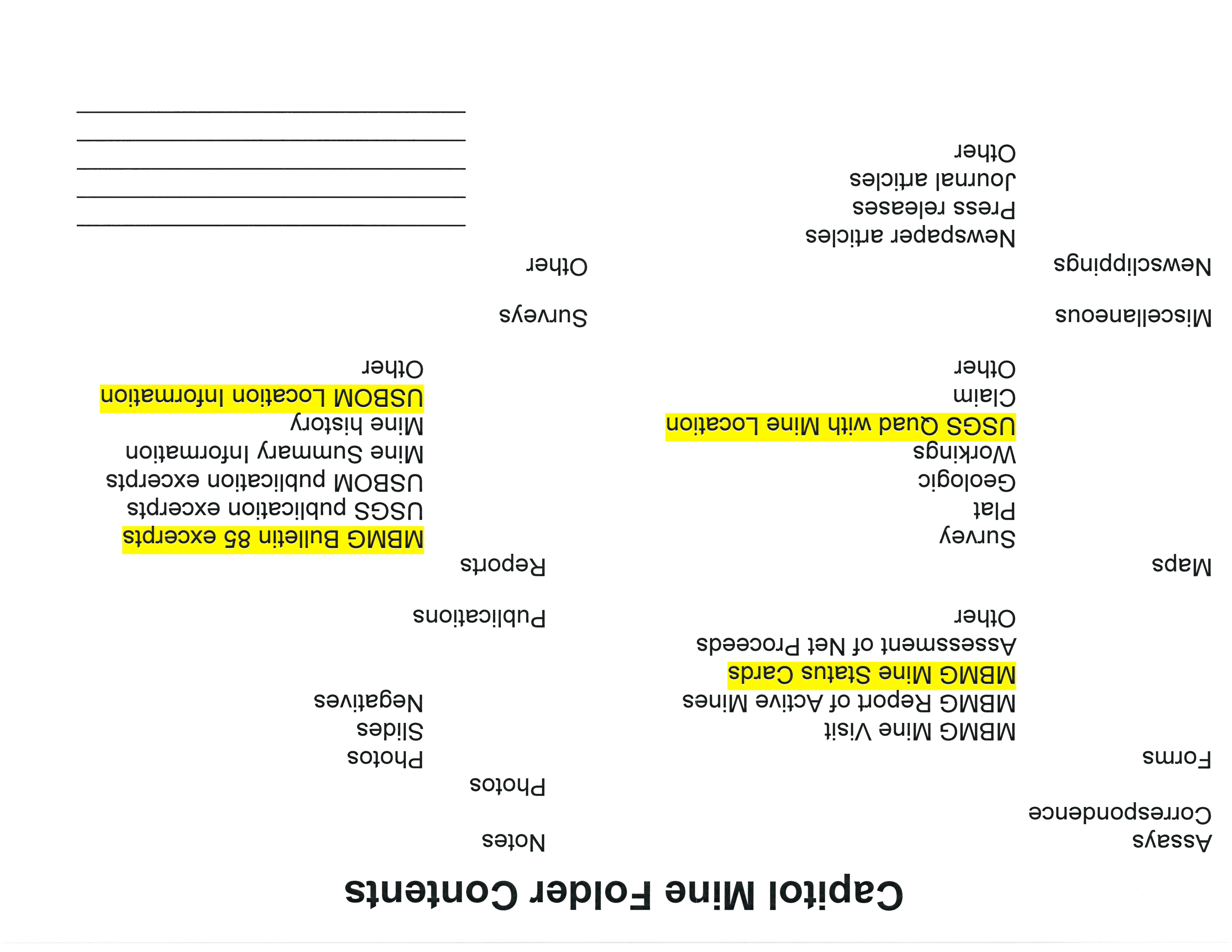 - "Capitol Mine Folder Contents", Beaverhead Mine Documents, Montana Bureau of Mines and Geology