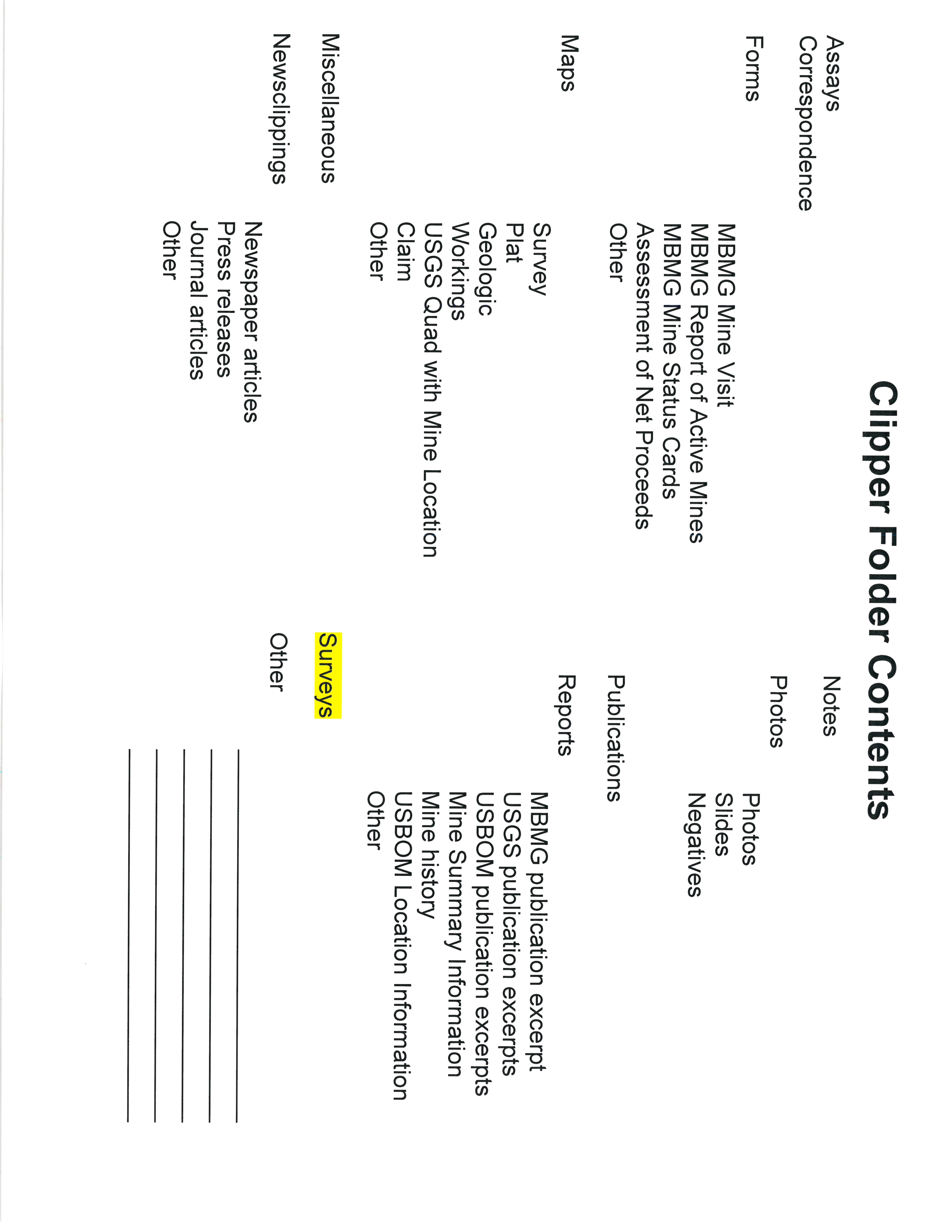 - "Clipper Folder Contents", Beaverhead Mine Documents, Montana Bureau of Mines and Geology