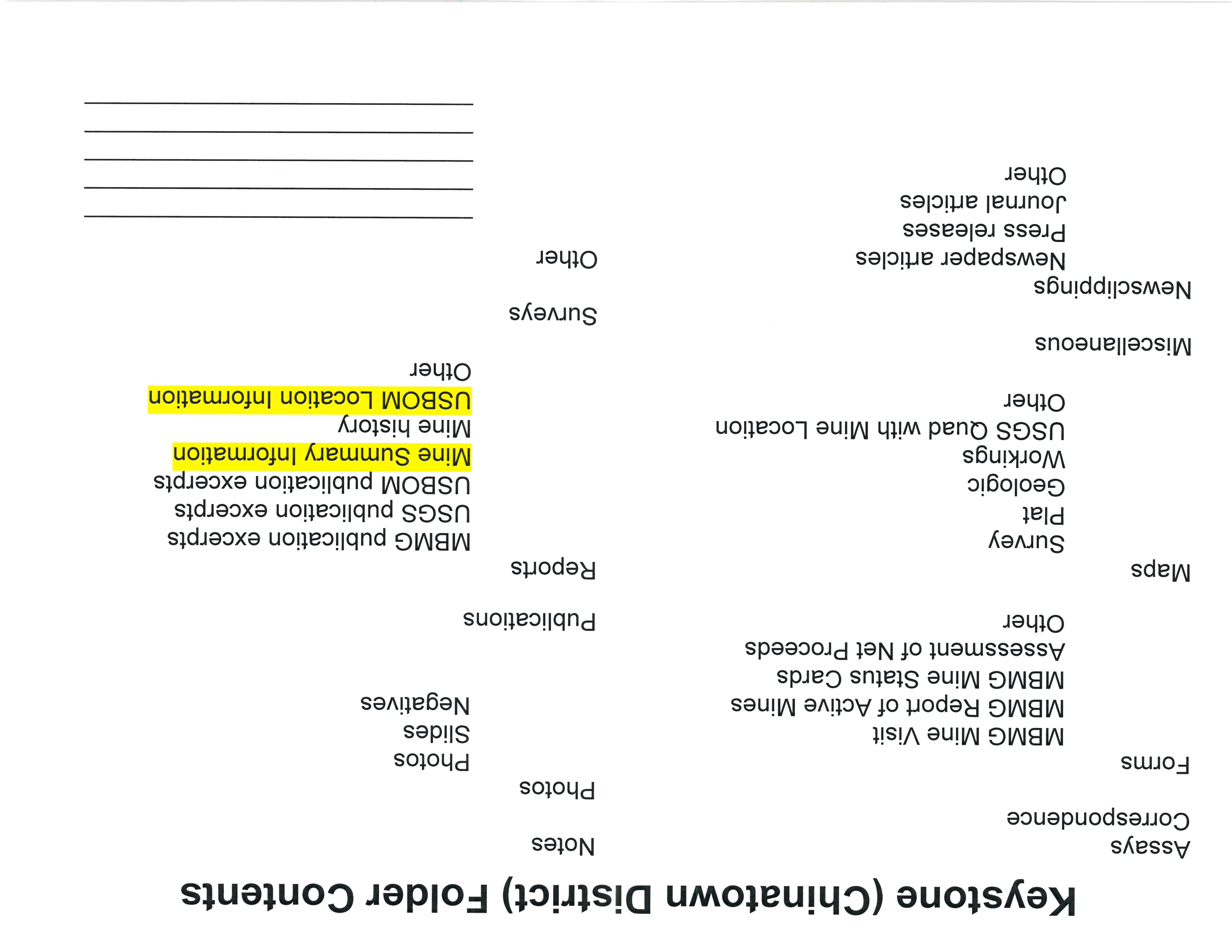- "Keystone Chinatown Folder Contents", Beaverhead Mine Documents, Montana Bureau of Mines and Geology