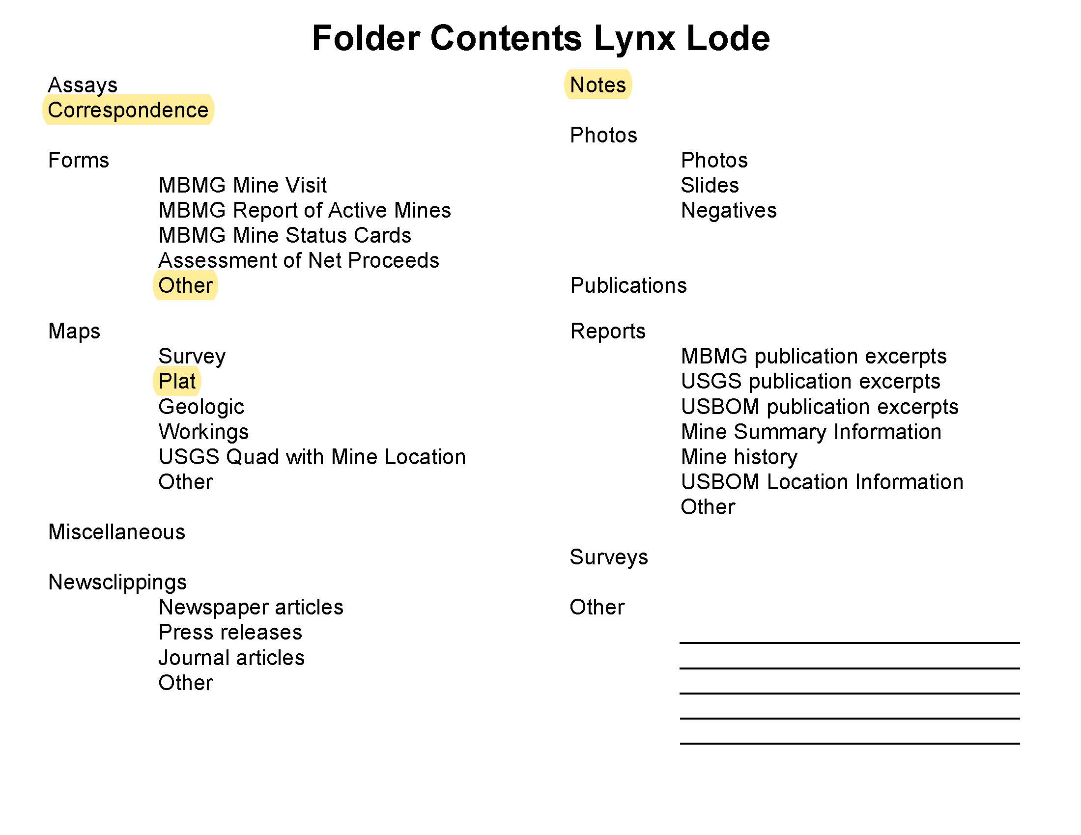 - "Lynx Lode", Beaverhead Mine Documents, Montana Bureau of Mines and Geology